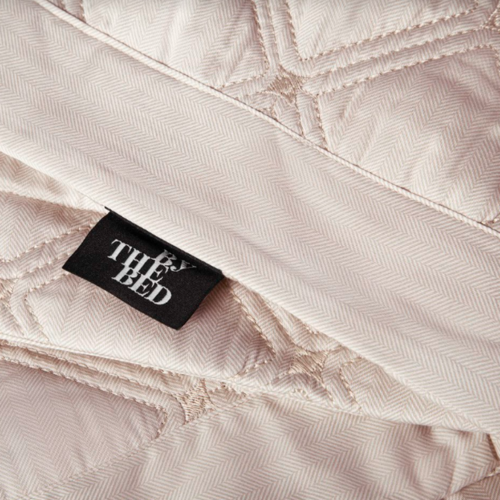 Todas as peças são 100% em algodão egípcio, construção acetinada em 230 fios single picking. Colcha off white bordada em tecido liso.
